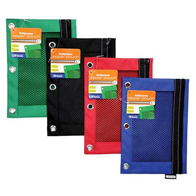 BAZIC's pencil pouch and organizers are great organizational tools for those looking to simplify their desk or backpacks. Ensure your pencil's and small items are protected with our durable storage solutions. 3-Ring Pencil Pouch w/ Mesh Window. 3/8 Inch - Height x 6. 9 Inch - Width x 9. 6 Inch - Length. Large pocket to hold pens, pencils and accessories. Durable canvas material is made to last. Try other great BAZIC Products. We offer a wide range of stationery products for all your school and office needs. *Colors Delivered May Vary*