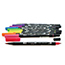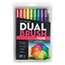 These dual brush pens have a versatile and flexible nylon fiber brush tip on 1 end that creates medium or bold strokes by simply changing brush pressure. The fine tip on the other end is for smooth straight lines or writing. The resilient nylon brush retains its point, stroke after stroke. The ink is water-based and blendable: use 2 colors together, or use the colorless blender pen. The pen tips self-clean after blending so there is no messy clean-up! Use these pens for coloring, rubber stamping, hand-lettering, doodling, journaling, and more. Perfect for fine art techniques. The ink is acid-free, non-toxic, odorless, and non-bleeding. Each package contains 10 pens (9 colored, 1 colorless). Available in a variety of color schemes, each sold separately. Conforms to ASTM D 4236.