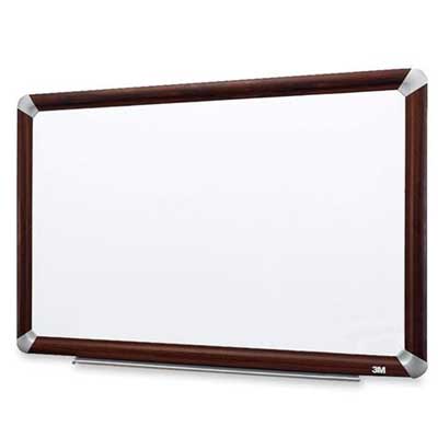 Dry-erase board offers a high-quality melamine surface that is built to last. Design features a stylish mahogany frame with aluminum accents for a contemporary look. Install horizontally or vertically with Command Picture Hanging Strips. Included marker/eraser tray snaps easily into place.