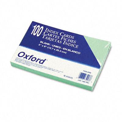 Oxford® Unruled Index Cards, 5 x 8, Green, 100/Pack